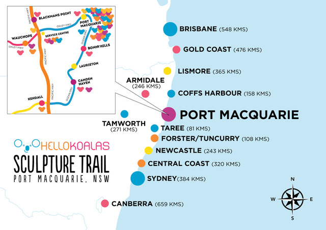 Greater Port Macquarie (Port Macquarie Hastings Local Government area) is located midway between Sydney and Brisbane on the NSW Mid North Coast, only 260km north of Newcastle, 420km from Sydney and 510km from Brisbane.