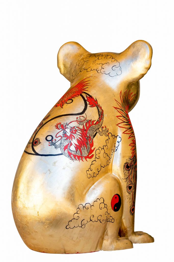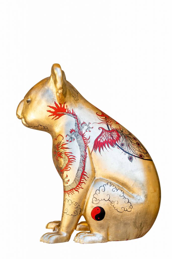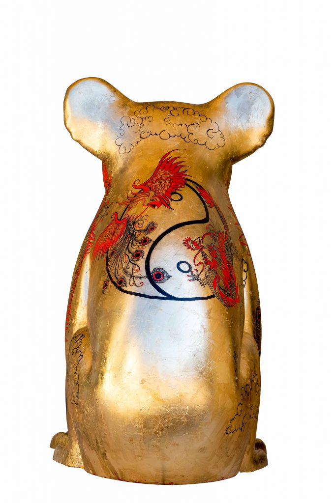 Chi features a design which intertwines the elements of Yin and Yang depicted by the striking imagery of the Phoenix and the Dragon. "Chi" is often described as the life force energy present in all people. When the yin and yang aspects of Chi are in harmony with one another, there is health, wellbeing and contentment. Inspired by the artist's recent travel in China, Chi is a tribute to Chinese culture and philosophy.
