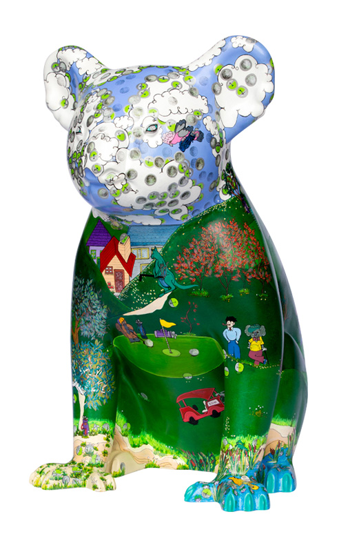 EDE Koala (pronounced Eddie) has been designed to be a fun play on the motto of Emerald Downs Golf Course – "18 hole golf course where you can live and play in harmony with nature”. Ede’s design is a fun animated golf course estate which has Golfers and native animals happily playing together.