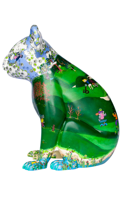 Zoya has worked on a vast amount of surfaces both for public sale and private commissions such as canvas and leather shoes, skate decks, fiberglass surfboards, resin jewellery , wall murals, handbags, skin, tattoo designs and now textiles. She recently started entering Acrylic Paintings and Works on Paper to Art Prizes with the successful selection 2 years running of the highly prestigious Blacktown City Art Prize and The 2012 Bellingen Art Prize. Zoya is currently working on a picture book, soon to be published and is very excited to be a part of the Hello Koalas Sculpture Project.