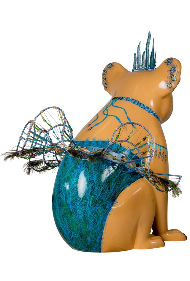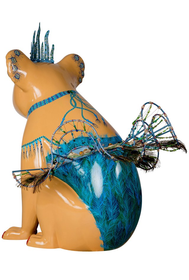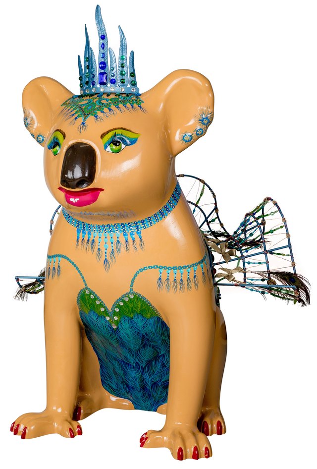 Lady Lola The Dancing Koala was created by Francessca with the contribution of local blacksmith Wayne Lewis (wayne.ironfist@gmall.com) who made the extravagant tutu and tiara, decorated with jewels and ostrich feathers.