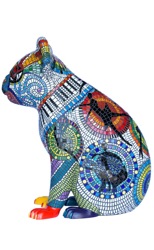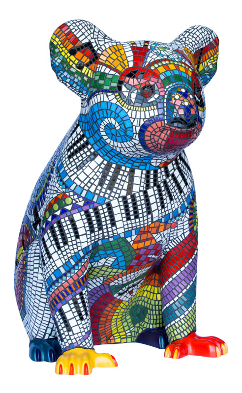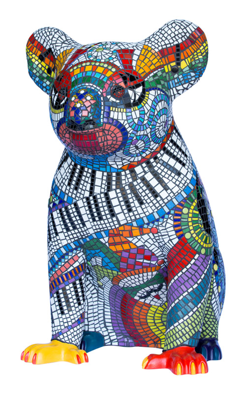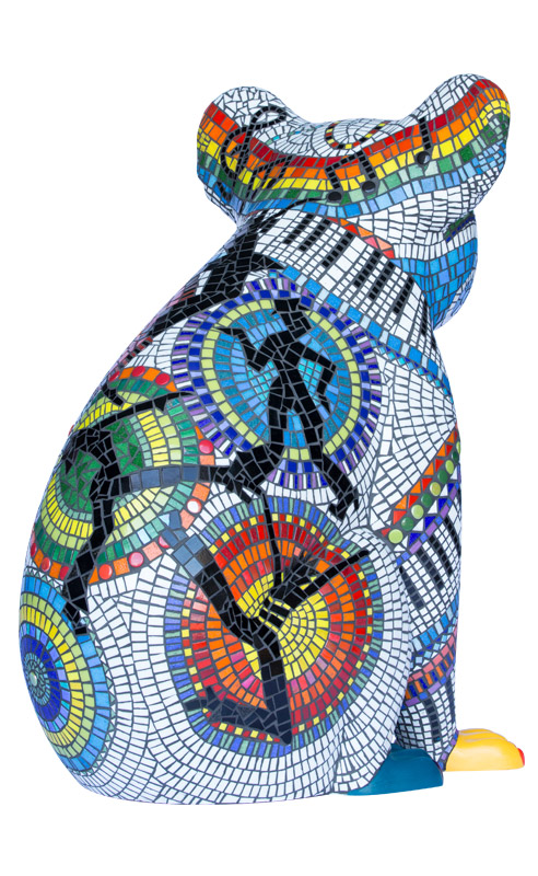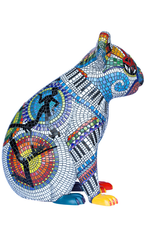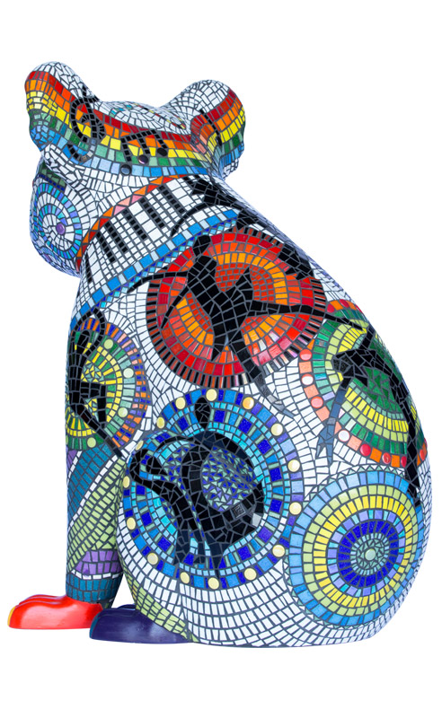 Francessca's vision was to create two fun-loving, colourful mosaic koalas that would inspire delight and wonder. The designs include vibrant performing arts icons of dance, drama and music and a bandaged leg in recognition of the wonderful work done by the Koala Hospital in Port Macquarie.