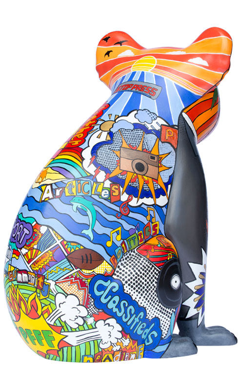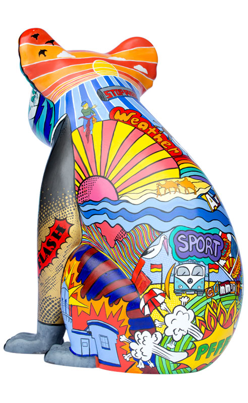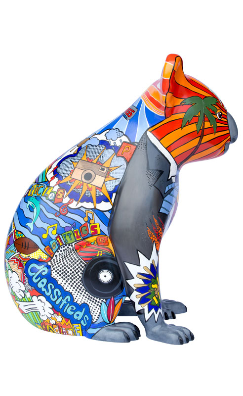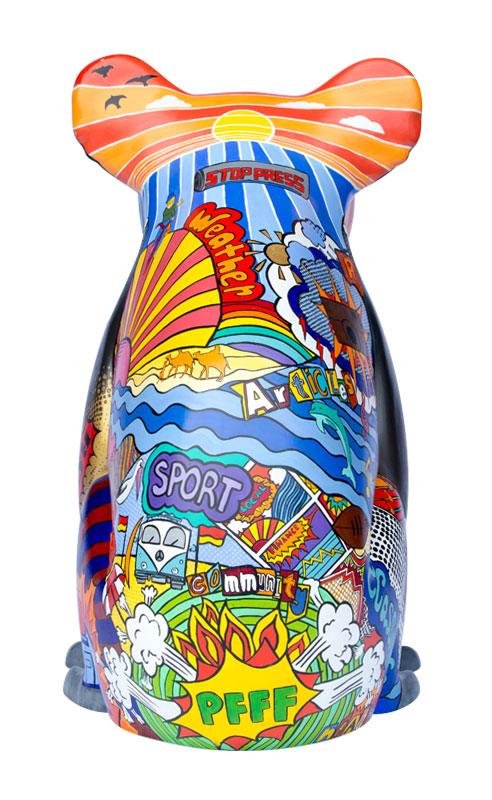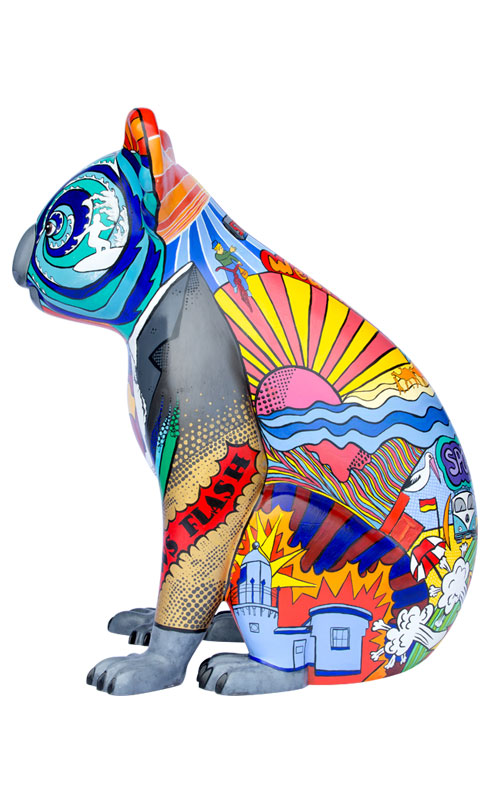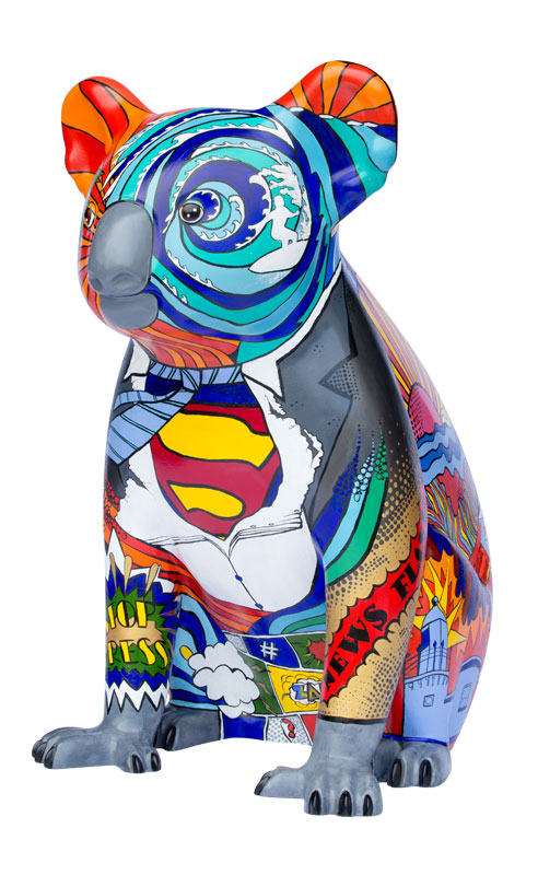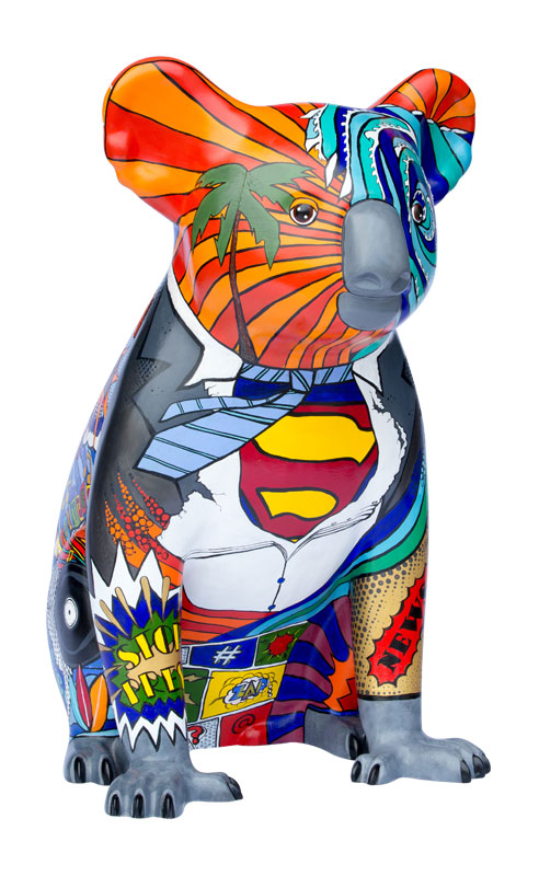 This design, named Scoop, is a Pop art styled koala representing Port Macquarie and the surrounding areas. It depicts the culture of the area represented by the oceans, rivers, music, art and the vibrant colours used.