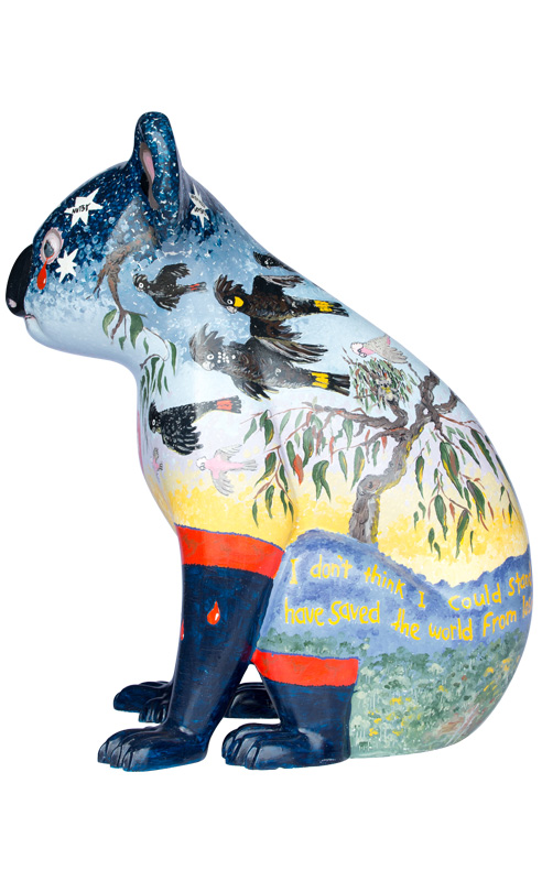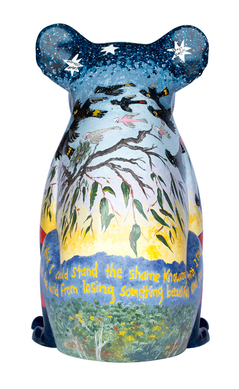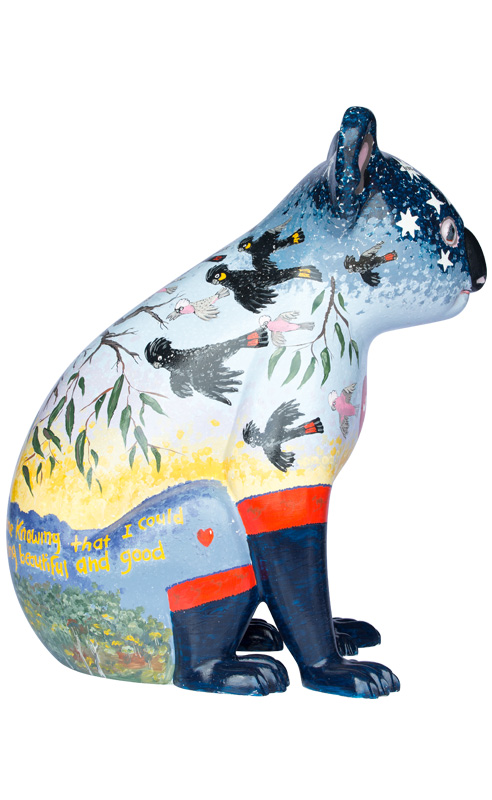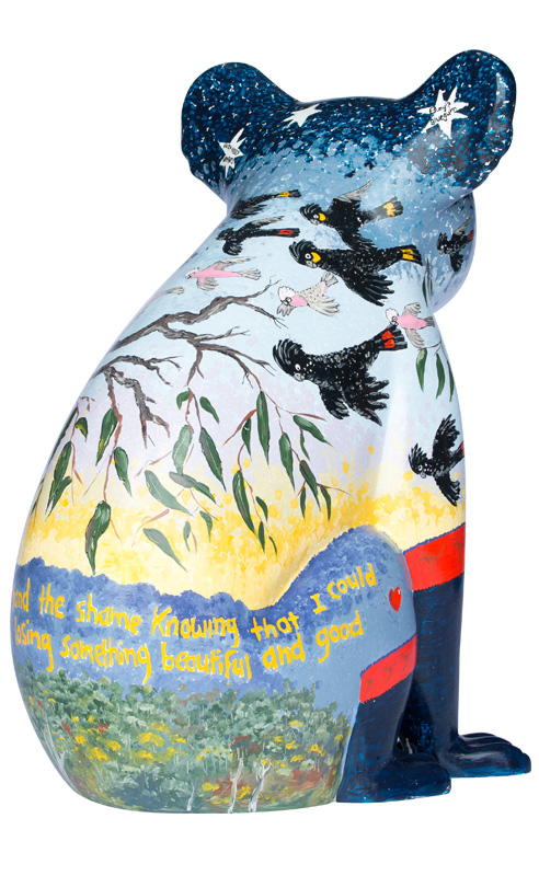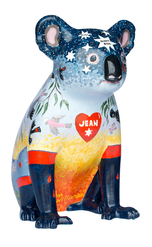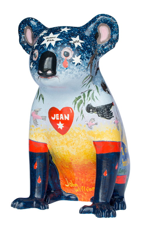 Not many people would know that John Williamson is an accomplished visual artist as well as a musician. John says, ”It seemed only natural that I have a go at painting a Koala sculpture. Ever since I was a kid I have dabbled in art. In fact I have designed and painted some of my album covers. If it weren't for my music career, I'm sure I would have pursued art more seriously. I hope I can do the koala justice. There will be stars in my painting, a subtle reminder of Jean Starr and her husband, Max, who were definitely stars in the effort of saving our cute icons. I have a cottage way above the Gold Coast and we are often blessed with the presence of koalas. So I think my creation will reflect the evening looking towards the west from our cliff top home.”