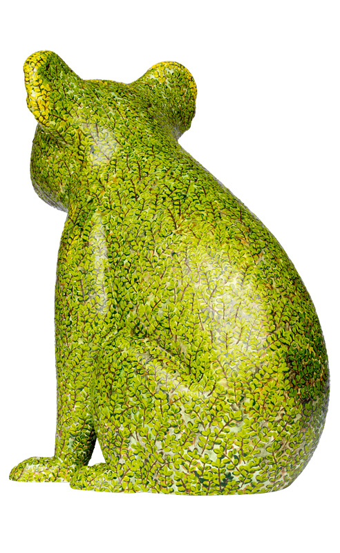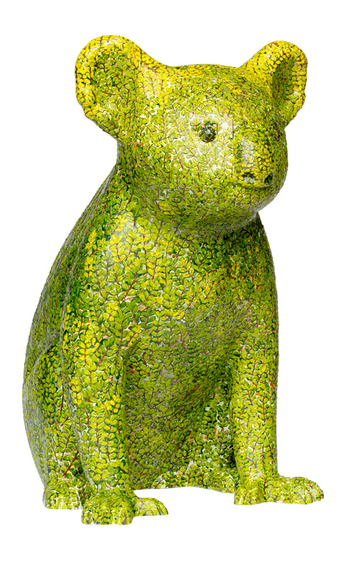 In Australian gardens this shrub is often used as a clipped garden hedge. The shrub is also ideal for clipping into well-defined formal shapes and topiary. My painted sculpture has the shape, texture, colour and appearance of a topiary koala.