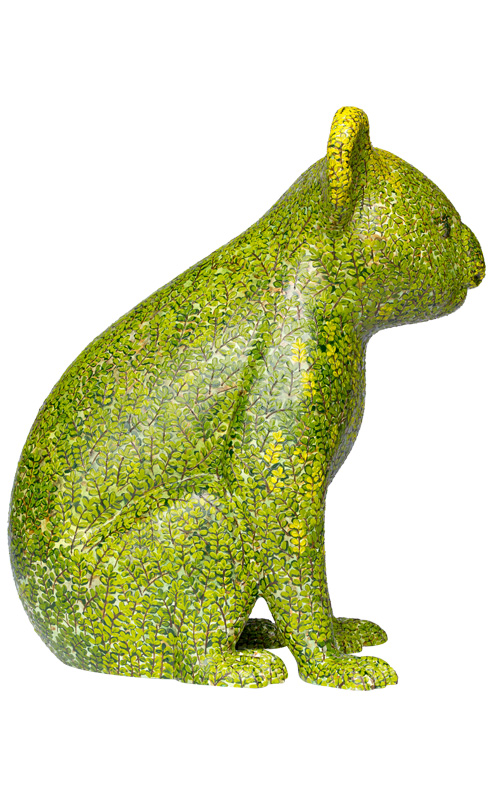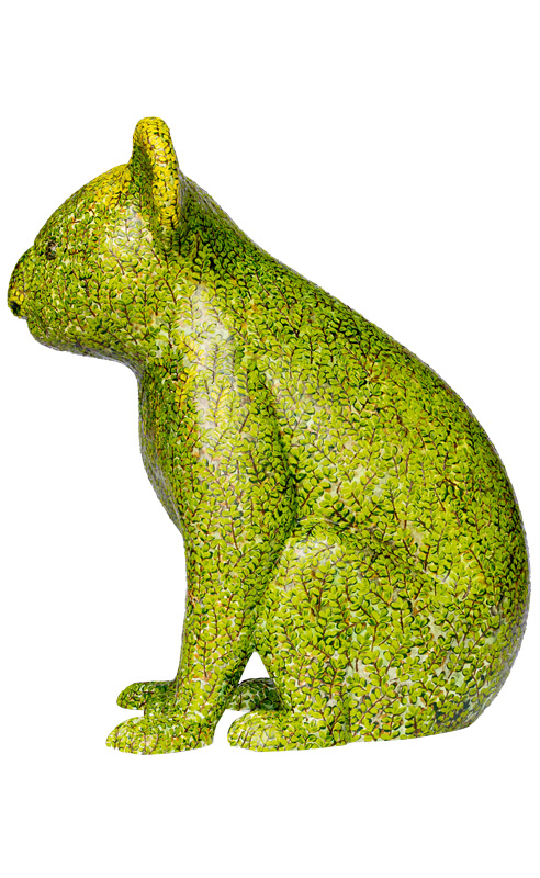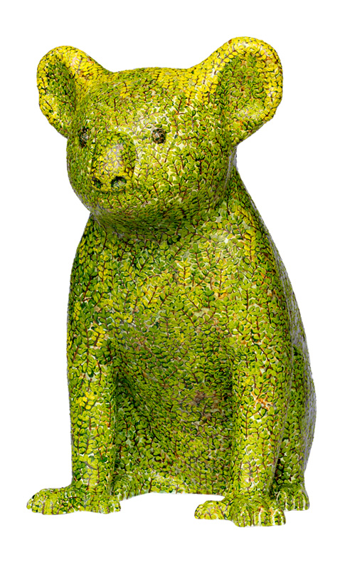 Topiary Koala is fun, playful and visually appealing. It encompasses ideas related to how we try to control and shape our environment through the taming of the unruly and the over grown so as to give order to the chaotic world in which we live. In the suburban gardens of Port Macquarie we often see this 'order' juxtaposed with bushland that is koala habitat. Topiary Koala is symbolic of habitat lost as more land is cleared for residential development.